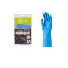 Guante de Látex natural en color azul, especial para la industria alimentaria Marca: Luna Interior: Satinado EPI Categoría I Guante reutilizable Disponible en tallas S, M, L y XL Con patrón antideslizante en dedos y palma Terminación puño: enrollado Longitud: 300 mm (aprox.) Espesor: 0.40 ± 0.05 mm Ergonómico, resistente y elástico Pesos par (± 5g): Talla S: 51g / M: 55g L: 60g / XL: 65g